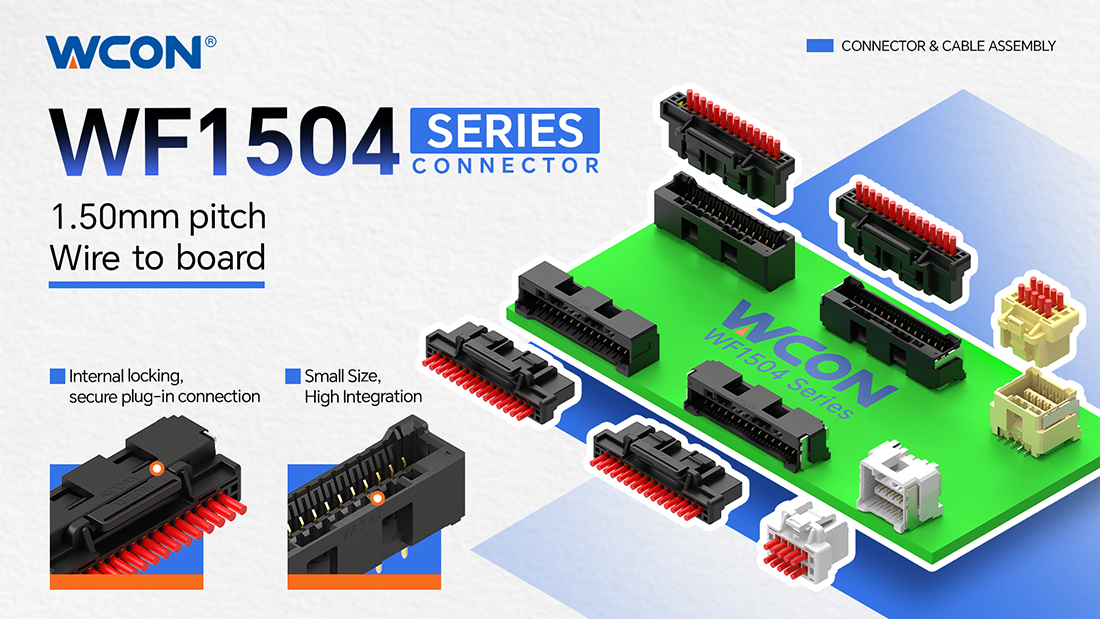 À mesure que les équipements industriels et les véhicules à énergie nouvelle évoluent vers une densité d’intégration plus élevée et une complexité accrue, la demande pour des connecteurs offrant une grande fiabilité, une faible force d’insertion et un verrouillage résistant aux vibrations dans des espaces restreints devient de plus en plus cruciale. La série WF1504 de WCON Electronics est un connecteur fil-carte à pas de 1,50 mm, disponible en configurations à rangée unique et à deux rangées, ainsi qu’en versions montées en surface et à trou traversant. Il supporte à la fois le montage vertical et à angle droit, offrant une adaptation flexible à différents angles d’accouplement.