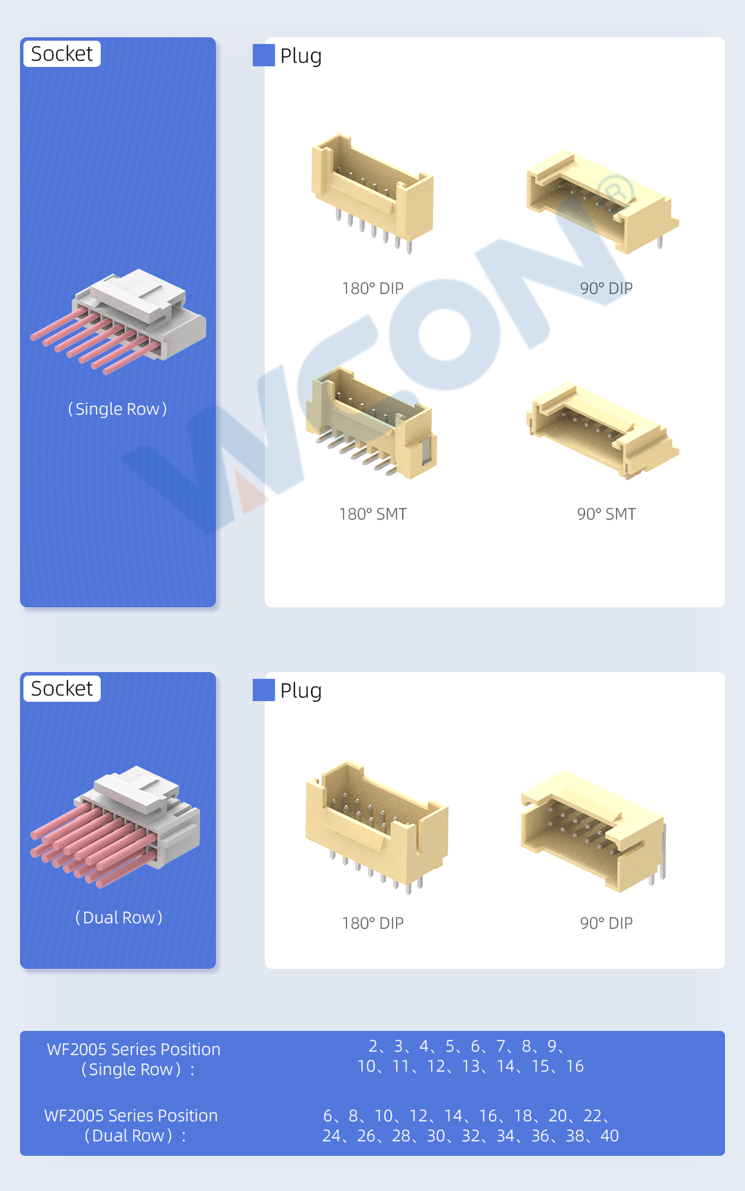 WF2005 Series High-Density Connector: 2.0mm Pitch, Dual-Contact Design, Stable Connection, Signal Peace of Mind